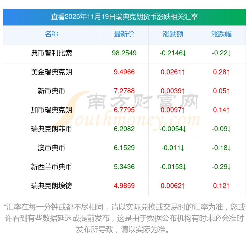 2025年11月19日瑞典克朗相關匯率查詢