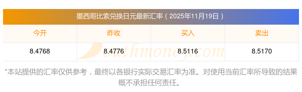 墨西哥比索和日元掛鉤兌換是多少?2025-11-19