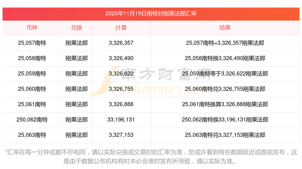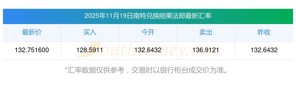 今日南特匯價:2025年11月19日34南特兌剛果法郎匯價一覽表