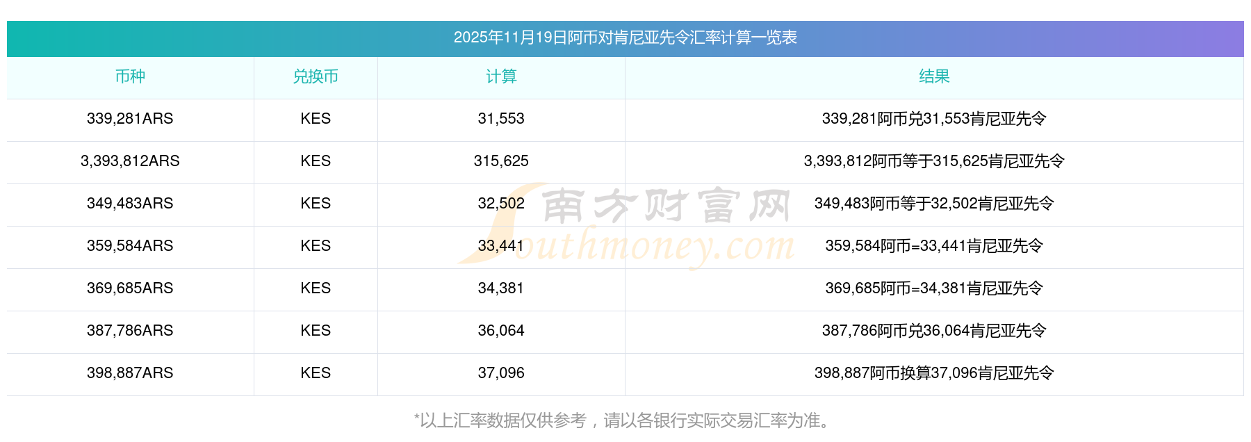 阿幣今日外匯_3阿幣兌換匯率表查詢(2025年11月19日)