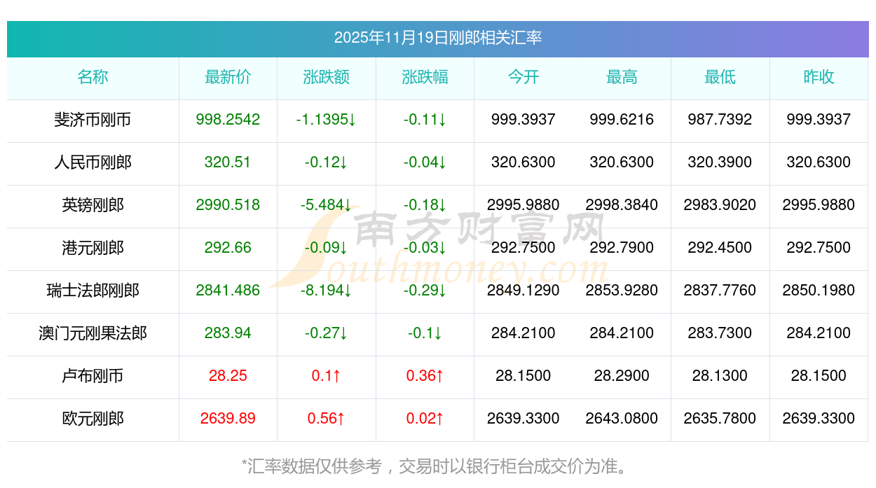 2025年11月19日剛郎相關(guān)匯率查詢