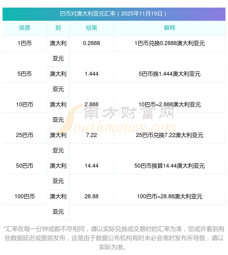 現(xiàn)在巴幣與澳大利亞元兌入?yún)R率多少?(11-19)