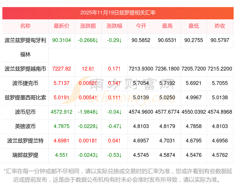 2025年11月19日茲羅提相關(guān)匯率查詢