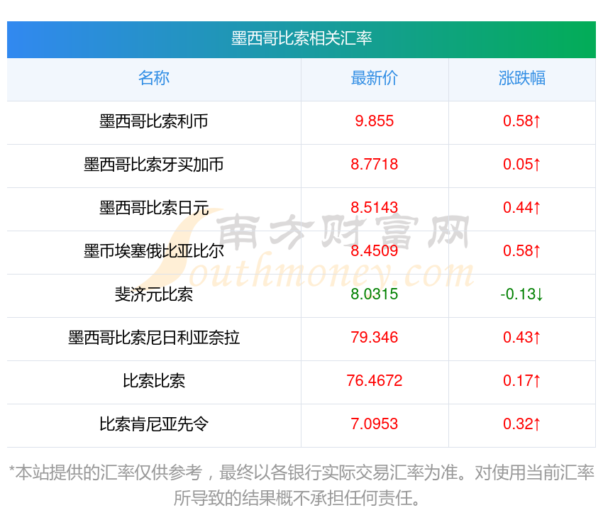 南方財富網(wǎng)為您提供墨西哥比索對哥倫比亞比索匯率最新價格詳情。