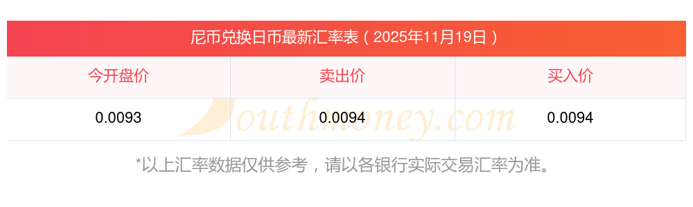 最新尼幣對日幣匯率是多少?