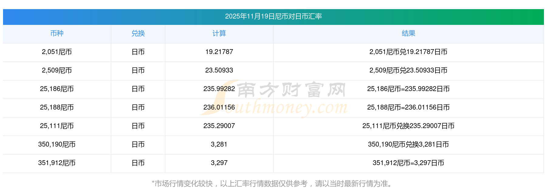 南方財富網為您提供尼幣對日幣匯率最新價格詳情。
