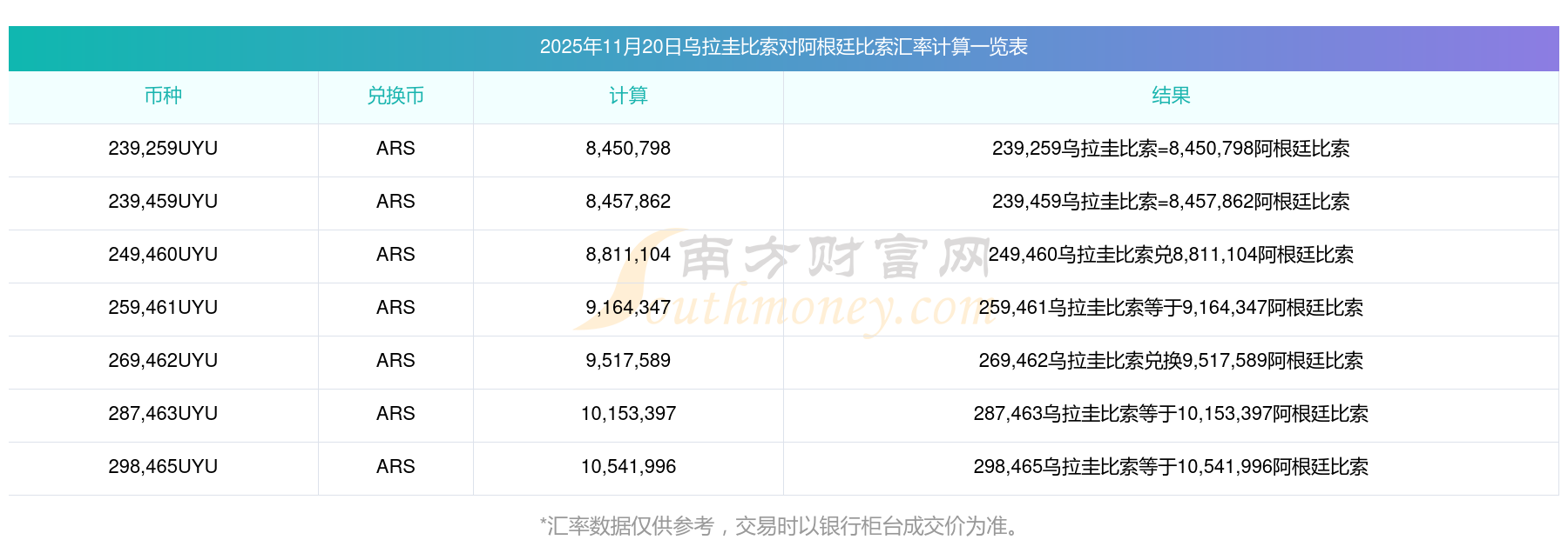 南方財富網(wǎng)為您提供烏拉圭比索對阿根廷比索匯率最新價格詳情。