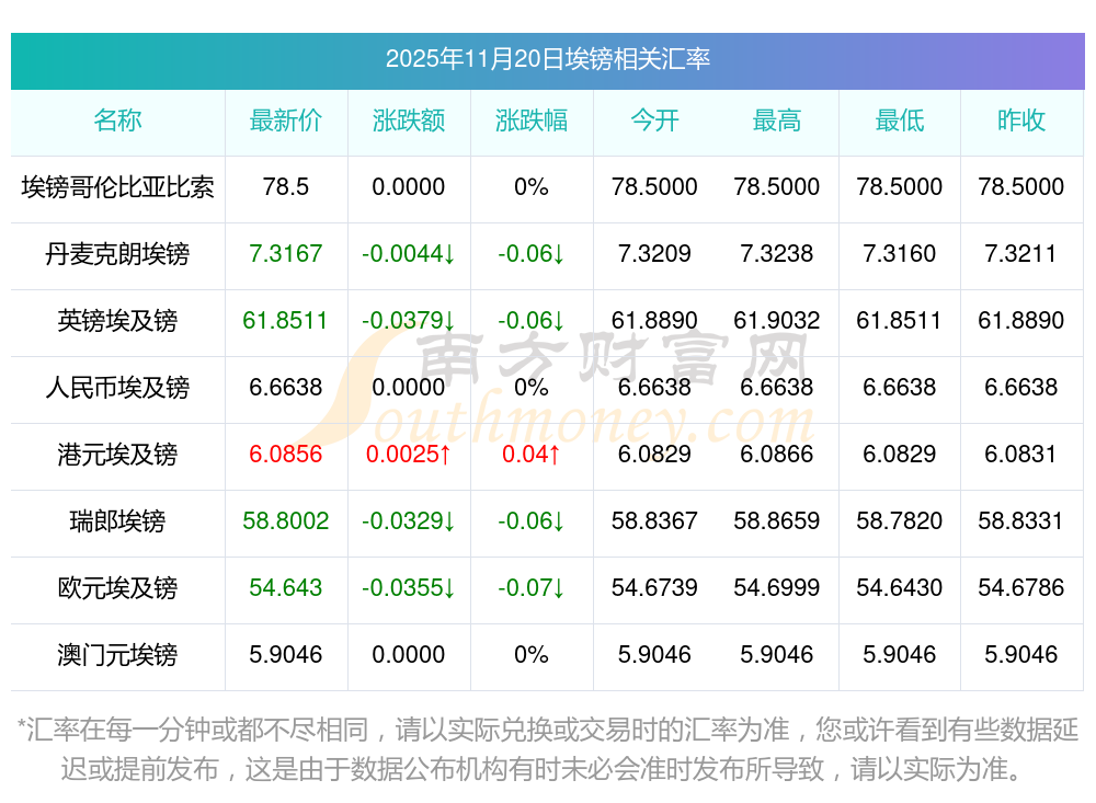 2025年11月20日埃鎊相關(guān)匯率查詢