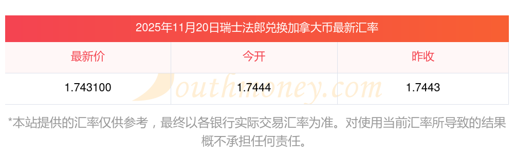 現(xiàn)在瑞士法郎對加元的匯率是多少?2025-11-20