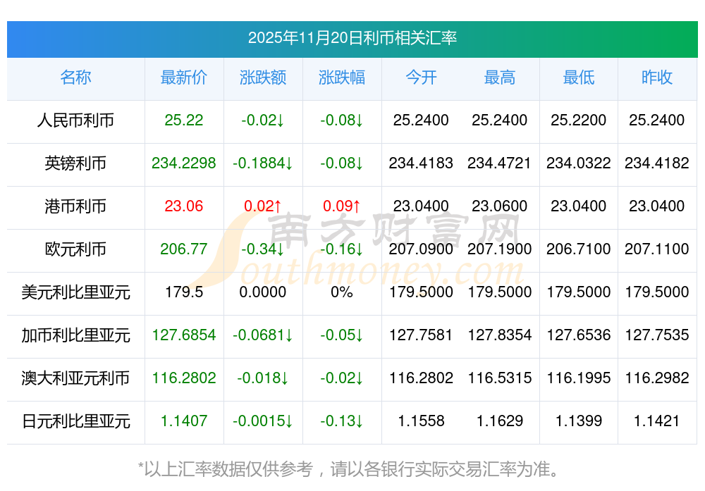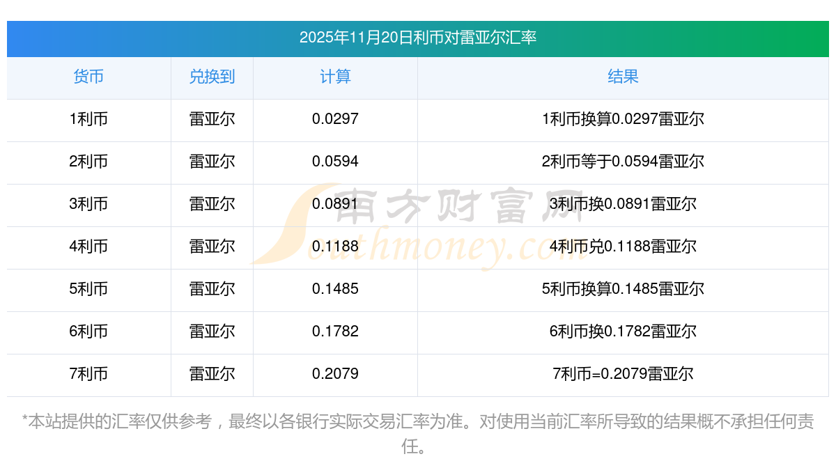 本周利幣匯率,利幣對(duì)雷亞爾匯率價(jià)多少?11月20日