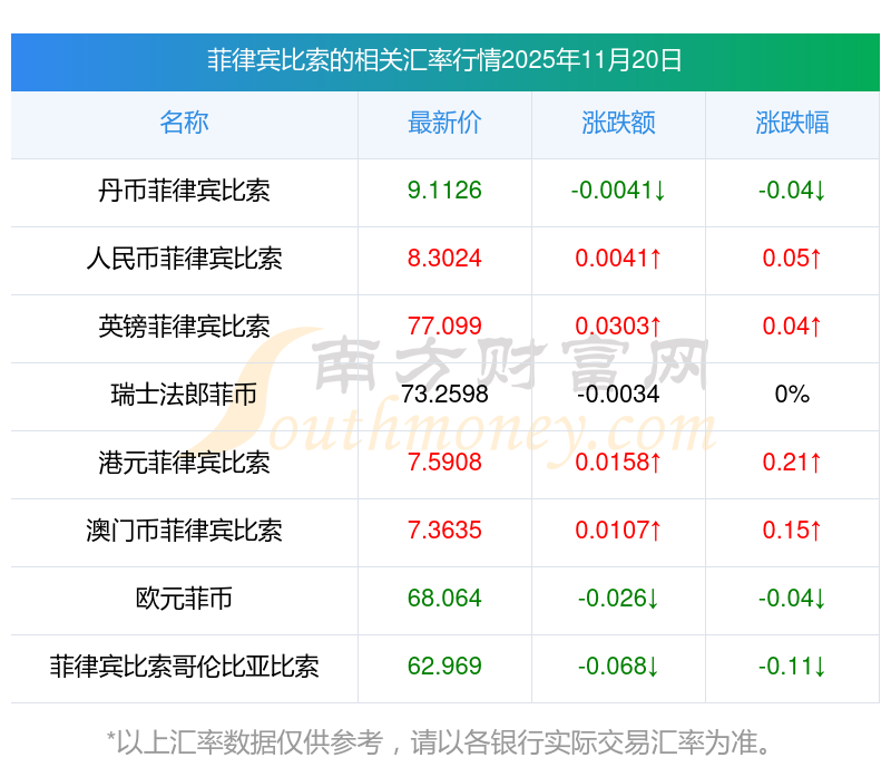 2025年11月20日菲律賓比索相關(guān)匯率查詢