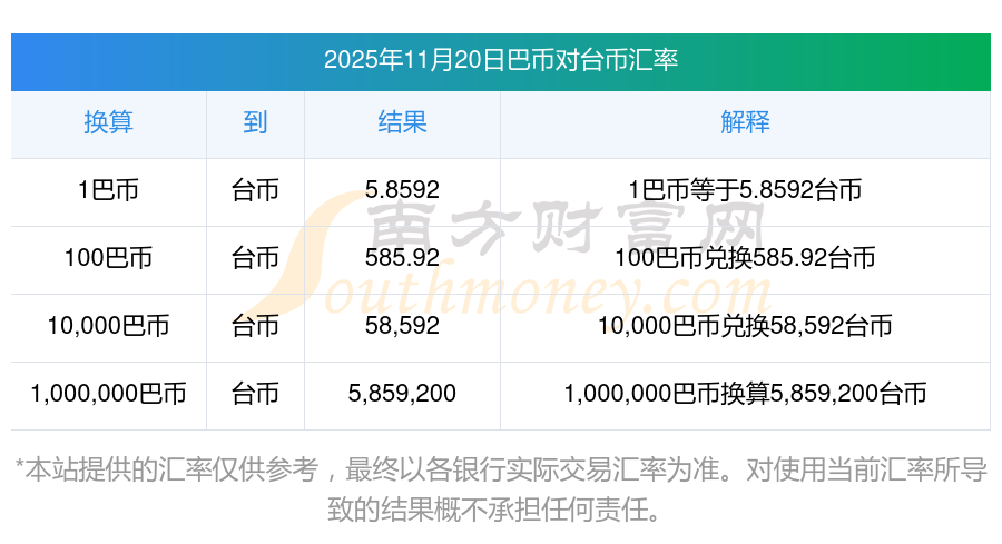 今日貨幣匯率調(diào)整:1028巴幣對臺幣匯率多少?2025/11/20
