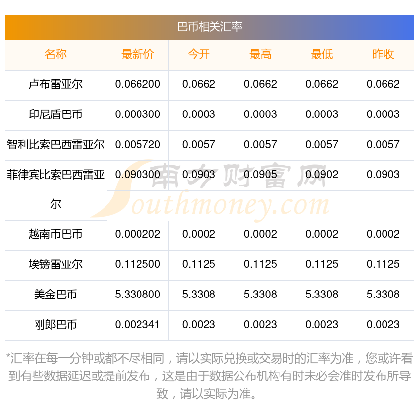 南方財富網(wǎng)為您提供巴幣對臺幣匯率最新價格詳情。
