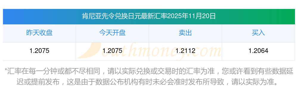 2025年11月20日肯尼亞先令兌換日元匯率是:1.2088