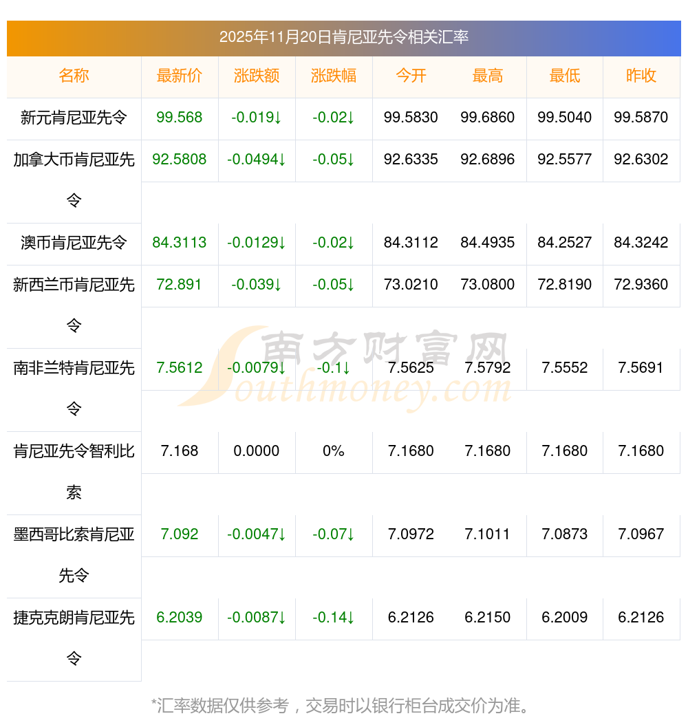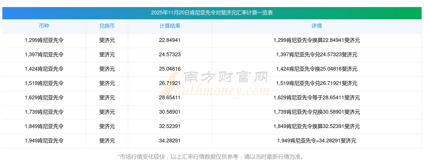 肯尼亞先令18折算成斐濟(jì)元匯率是多少 匯率查詢方法2025/11/20