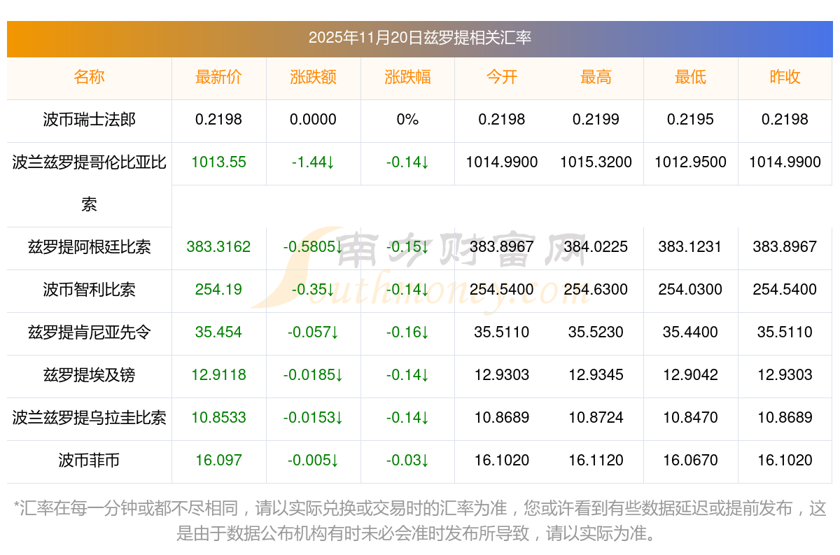 2025年11月20日茲羅提相關(guān)匯率查詢