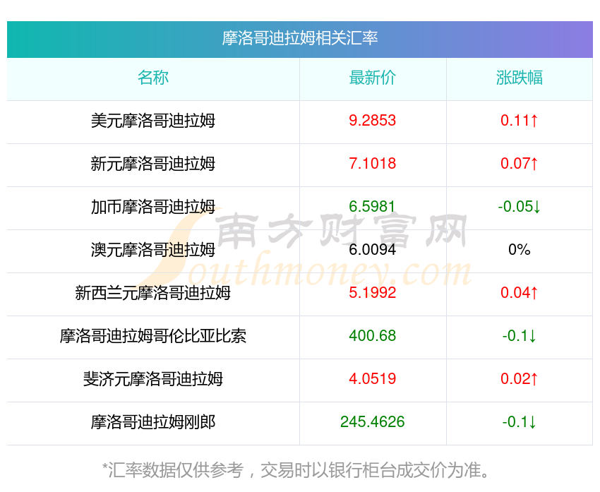 南方財(cái)富網(wǎng)為您提供摩洛哥迪拉姆對(duì)南特匯率最新價(jià)格詳情。