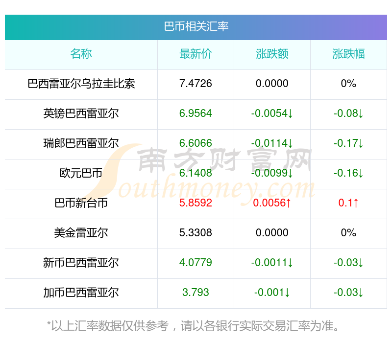 南方財富網(wǎng)為您提供巴幣對新臺幣匯率最新價格詳情。
