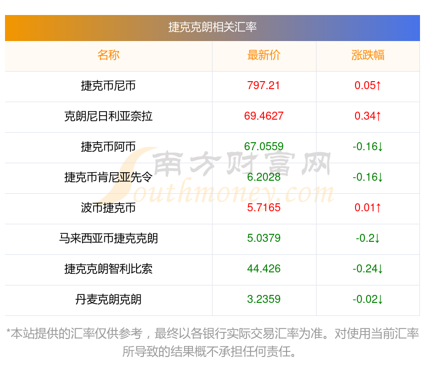 2025年11月20日捷克克朗相關(guān)匯率查詢