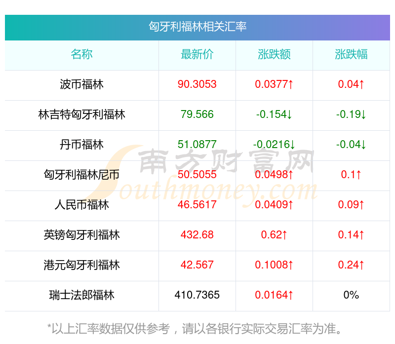 南方財富網(wǎng)為您提供匈牙利福林對挪威克朗匯率最新價格詳情。