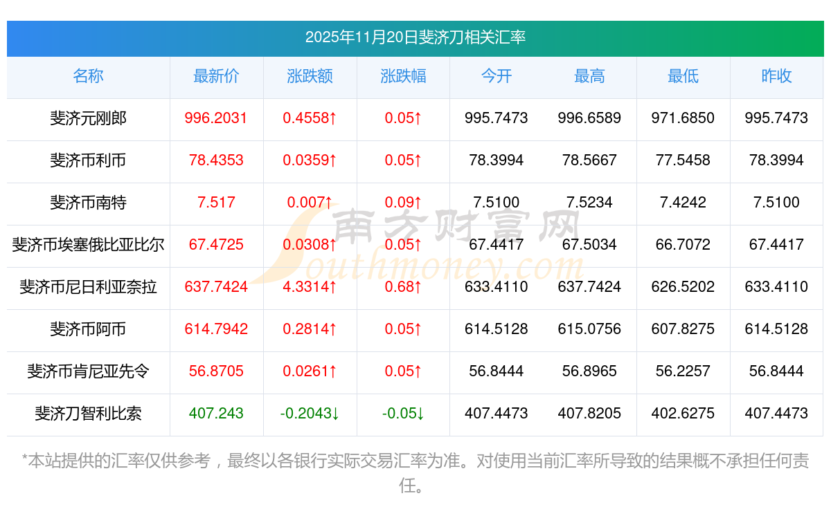 2025年11月20日最新消息,斐濟刀兌換烏拉圭比索最新匯率為17.406000,今開為17.3981,昨收為17.3981,最高為17.4140,最低為17.2088。