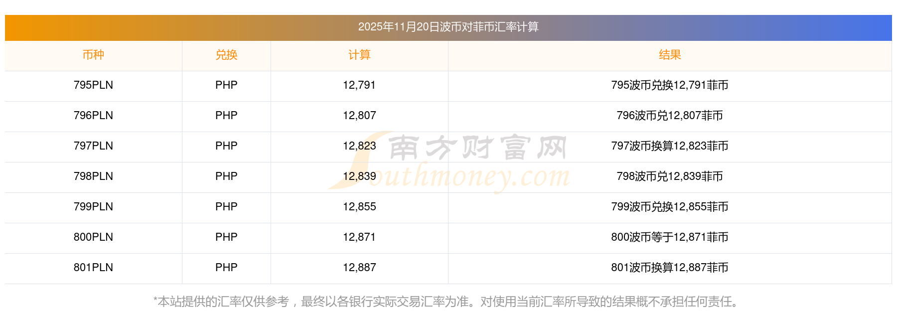 2025年11月20日波幣與菲幣的兌換匯率計算如下: