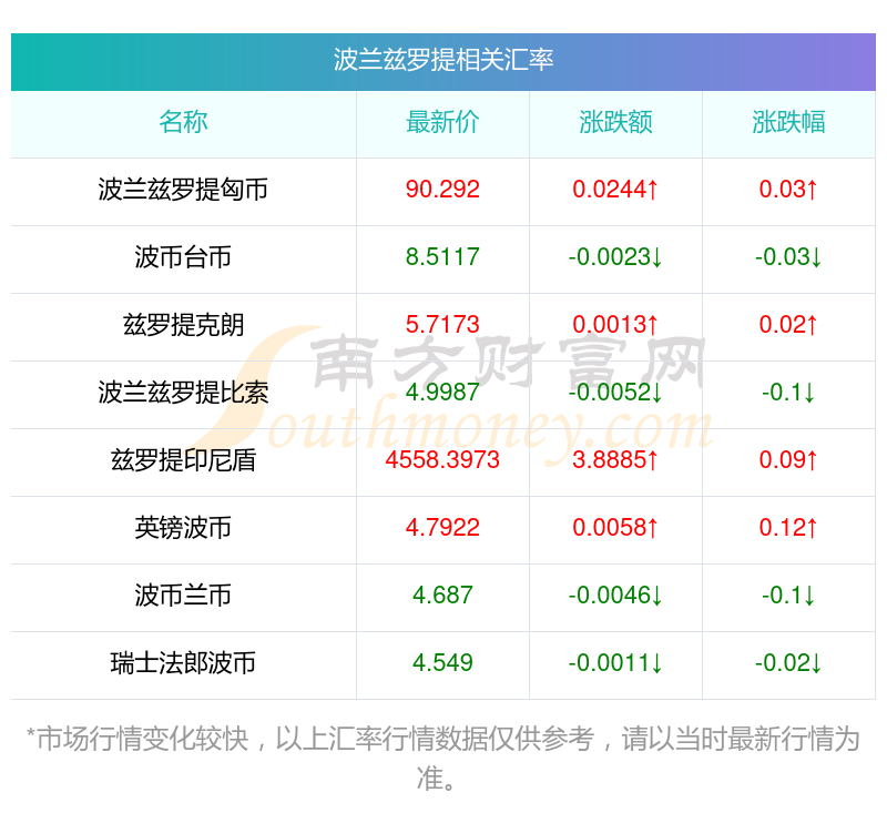 南方財(cái)富網(wǎng)為您提供波蘭茲羅提對(duì)瑞郎匯率最新價(jià)格詳情。