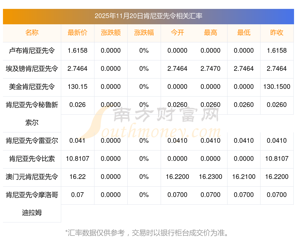 今天2025年11月20日最新匯率計(jì)算查詢: