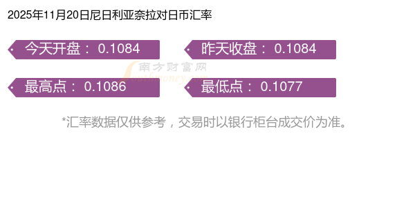 2025年11月20日尼日利亞奈拉對日幣的匯率為:0.10798