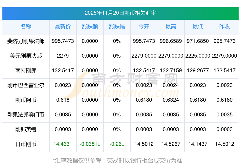 2025年11月20日剛幣相關(guān)匯率查詢