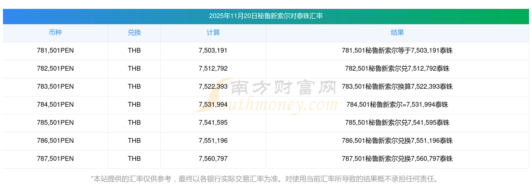 匯率實(shí)時(shí)更新!60秘魯新索爾兌換泰銖匯率表(2025年11月20日)