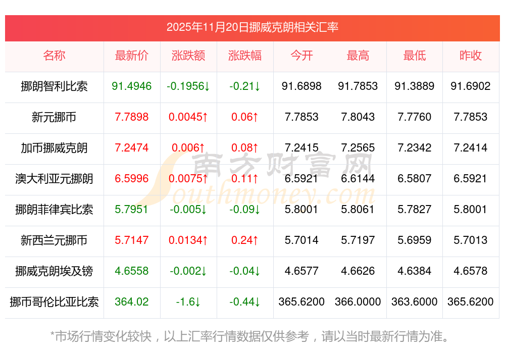 2025年11月20日挪威克朗相關(guān)匯率查詢