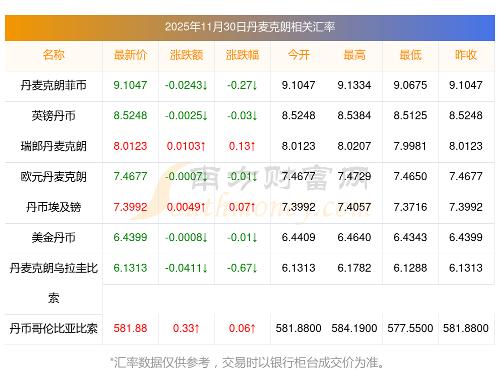 2025年11月30日丹麥克朗相關(guān)匯率查詢