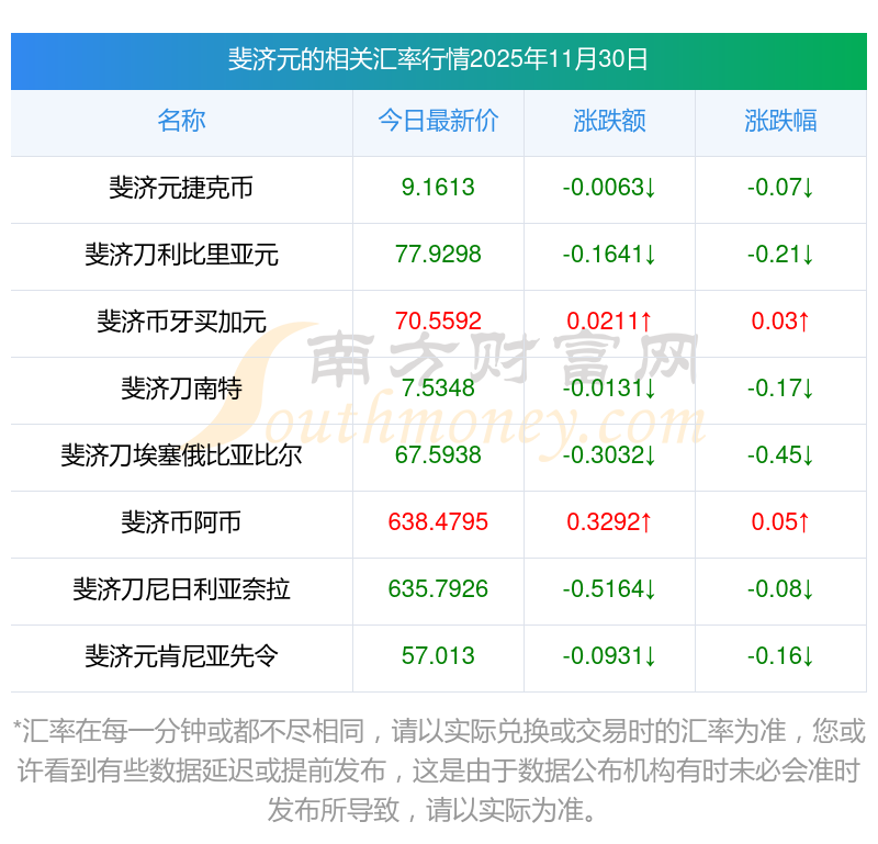 2025年11月30日斐濟元相關(guān)匯率查詢