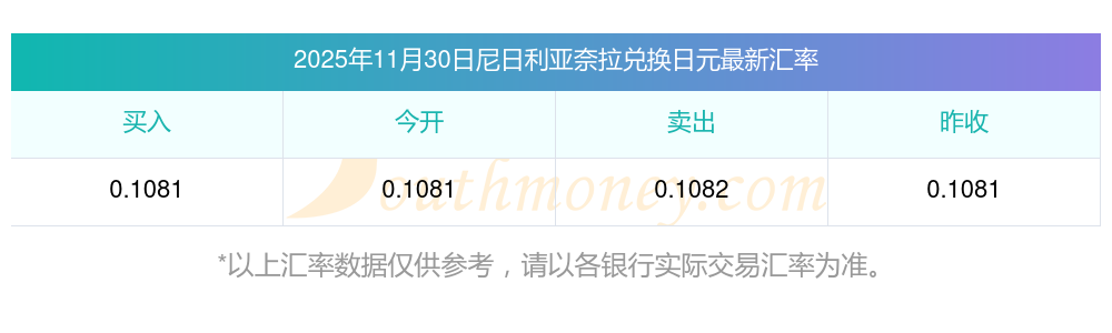 2025年11月30日尼日利亞奈拉兌換日元匯率是:0.10814