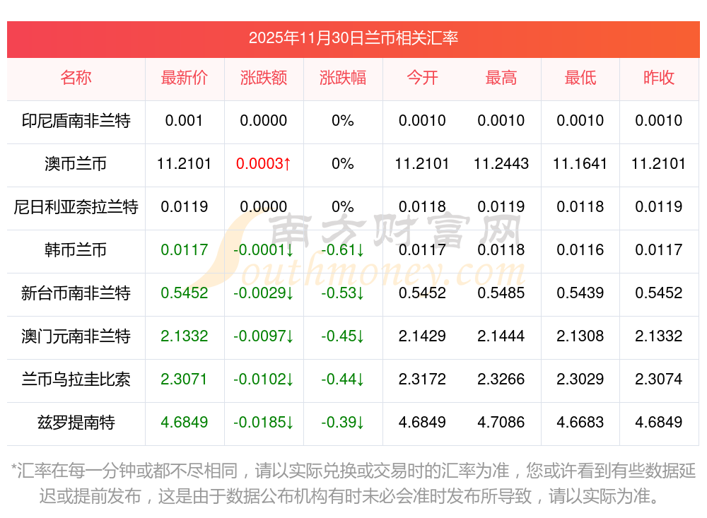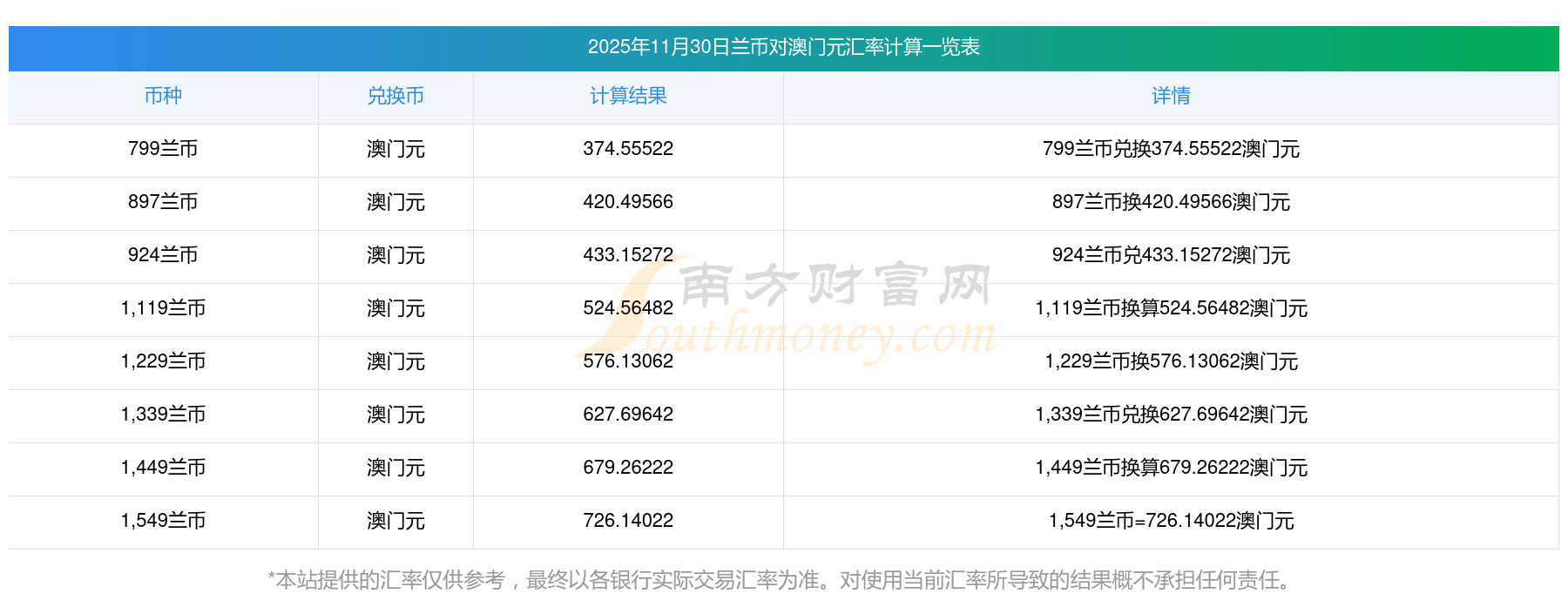 今日外匯匯率 蘭幣對(duì)澳門(mén)元計(jì)算匯率是多少2025/11/30