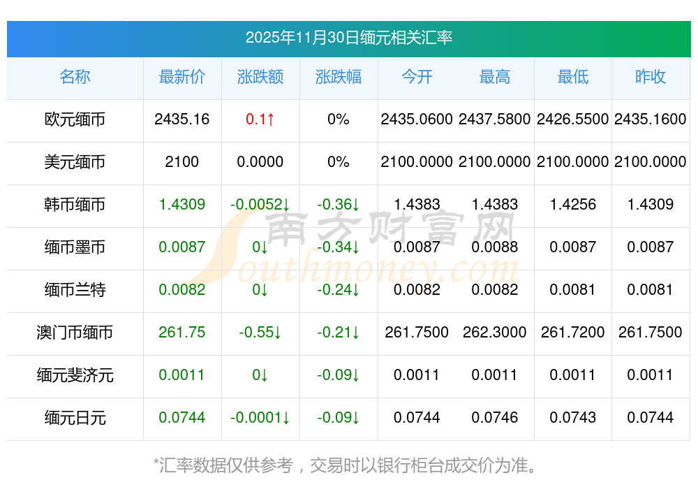 2025年11月30日緬元相關(guān)匯率查詢(xún)