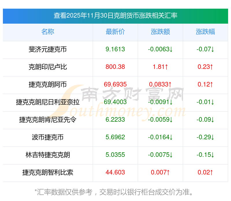 根據(jù)2025年11月30日匯率計算,CZK兌換IDR匯率最新價800.380000: