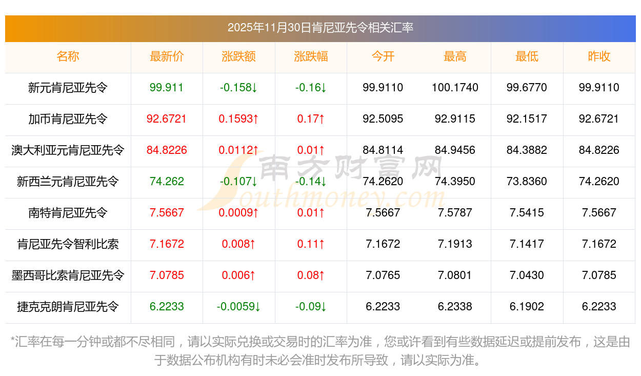 2025年11月30日肯尼亞先令相關(guān)匯率查詢