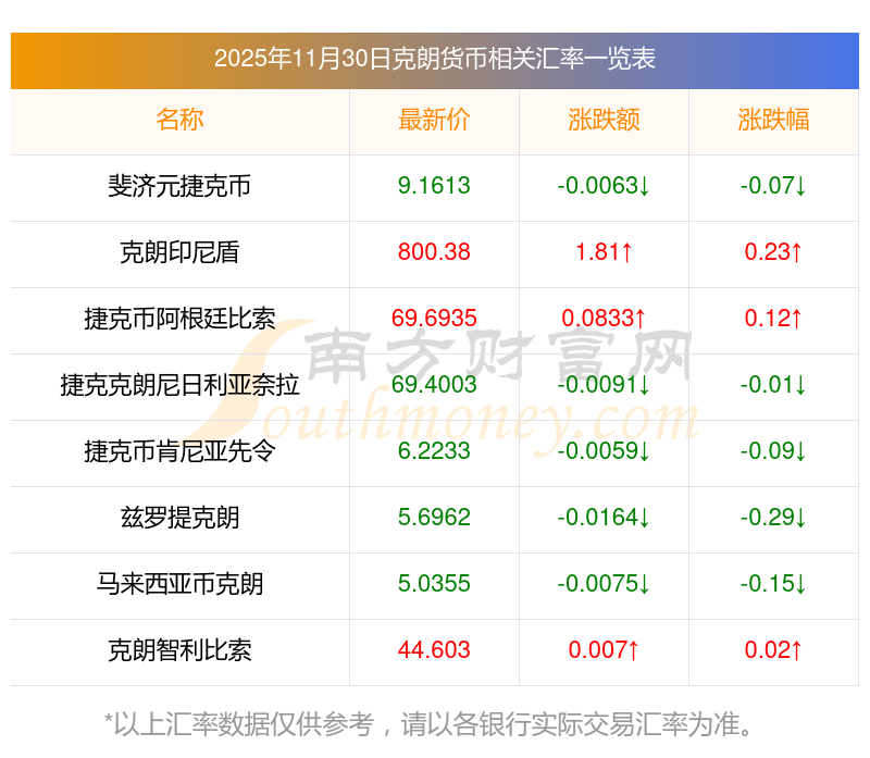 根據(jù)2025年11月30日匯率計算,CZK兌換USD匯率最新價0.048060:今開價0.0481,昨收價0.0481,最高價0.0481,最低價0.0478。