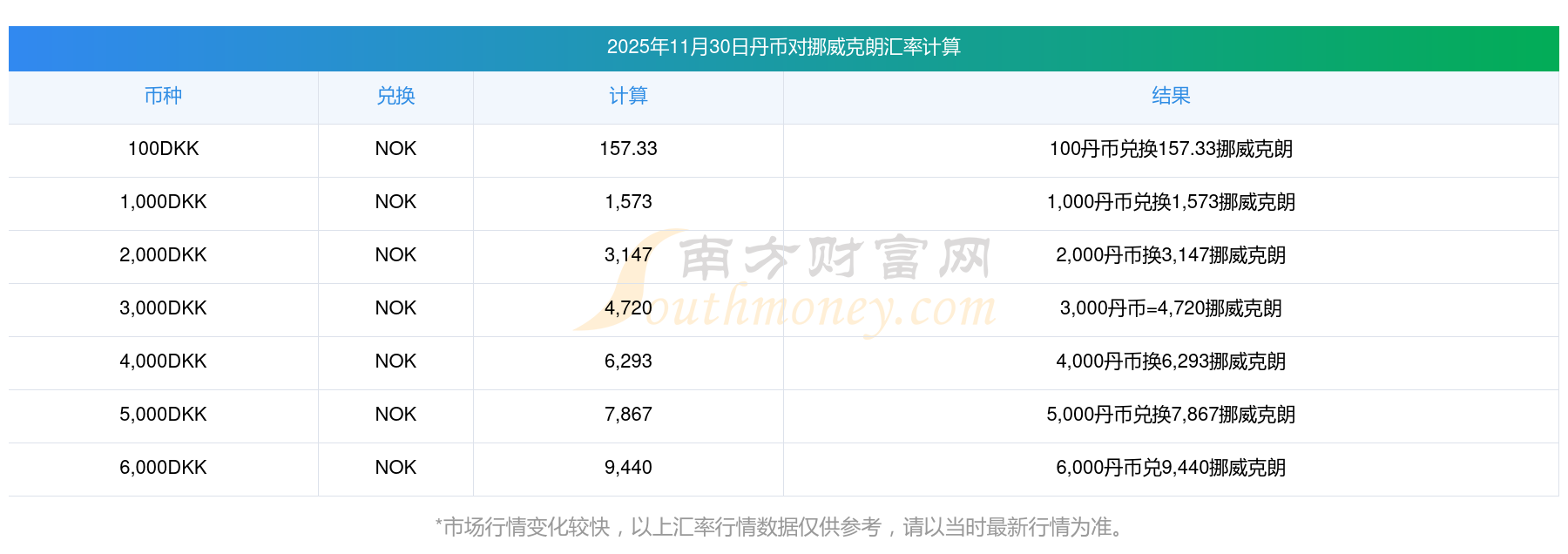 2025年11月30日今天丹幣對(duì)挪威克朗匯率一覽