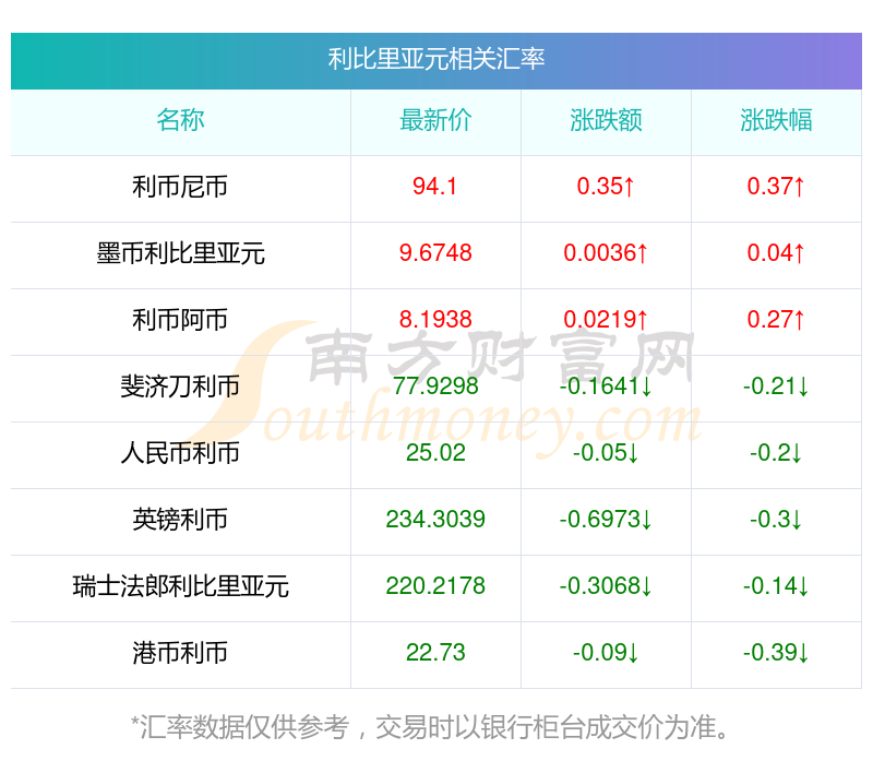 南方財(cái)富網(wǎng)為您提供利比里亞元對瑞郎匯率最新價(jià)格詳情。