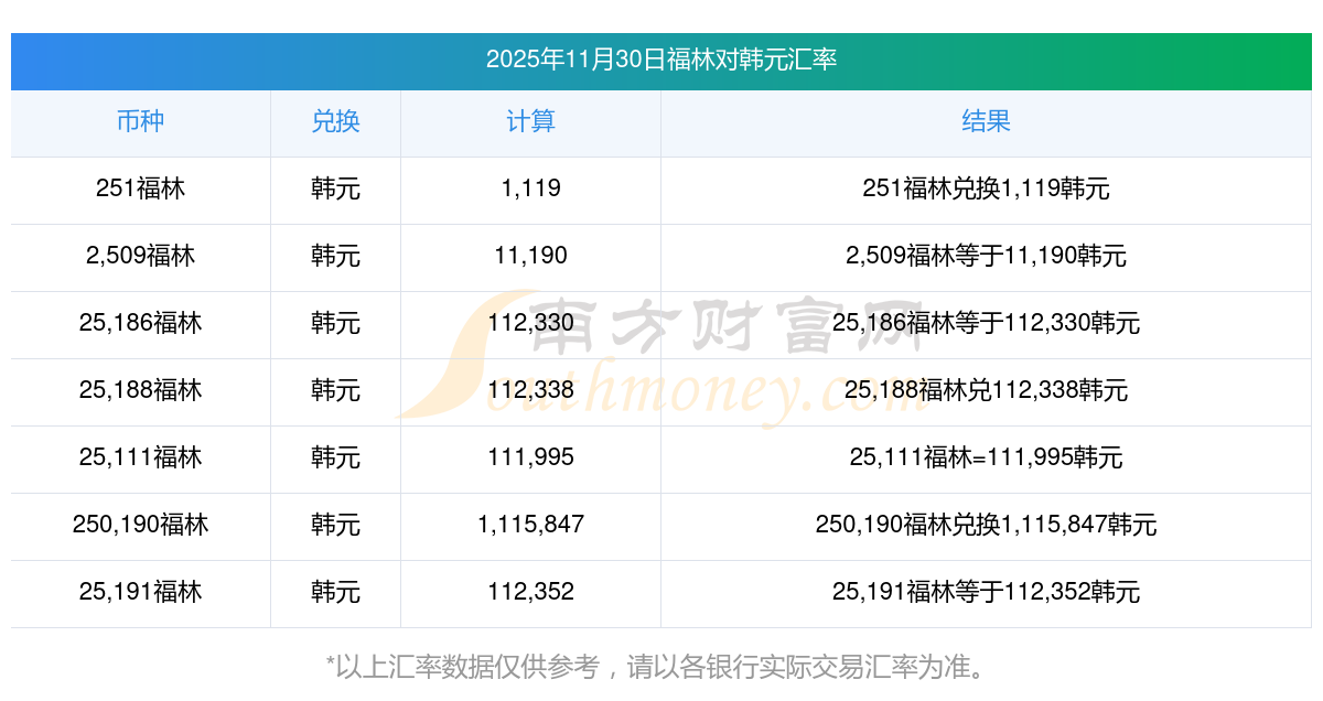今日匯率查詢_福林對韓元匯率(2025年11月30日)