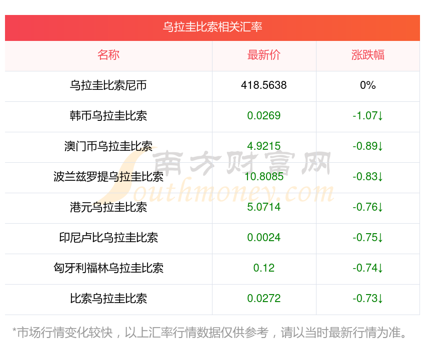 南方財(cái)富網(wǎng)為您提供烏拉圭比索對典幣匯率最新價(jià)格詳情。