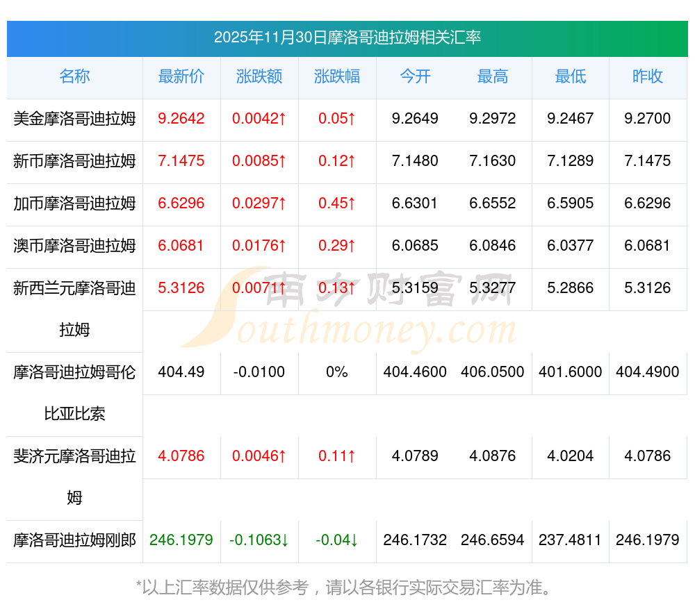 2025年11月30日摩洛哥迪拉姆相關(guān)匯率查詢