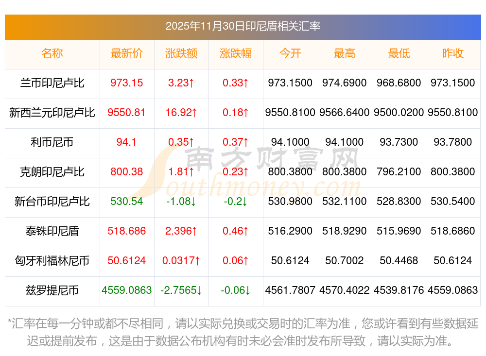 2025年11月30日印尼盾相關(guān)匯率查詢