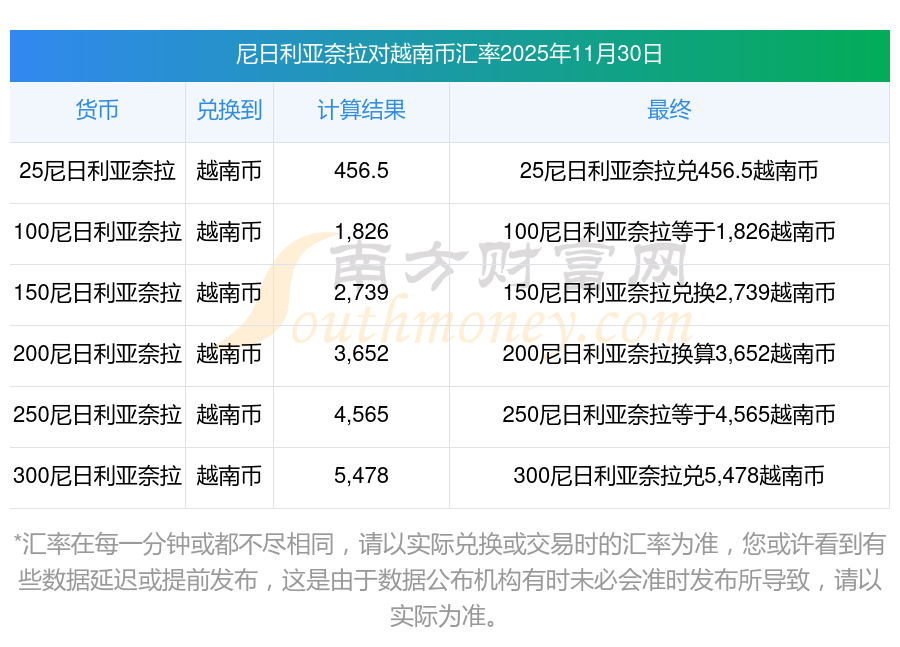 匯率查詢 | 8萬尼日利亞奈拉轉(zhuǎn)換越南幣匯率是多少? 2025/11/30