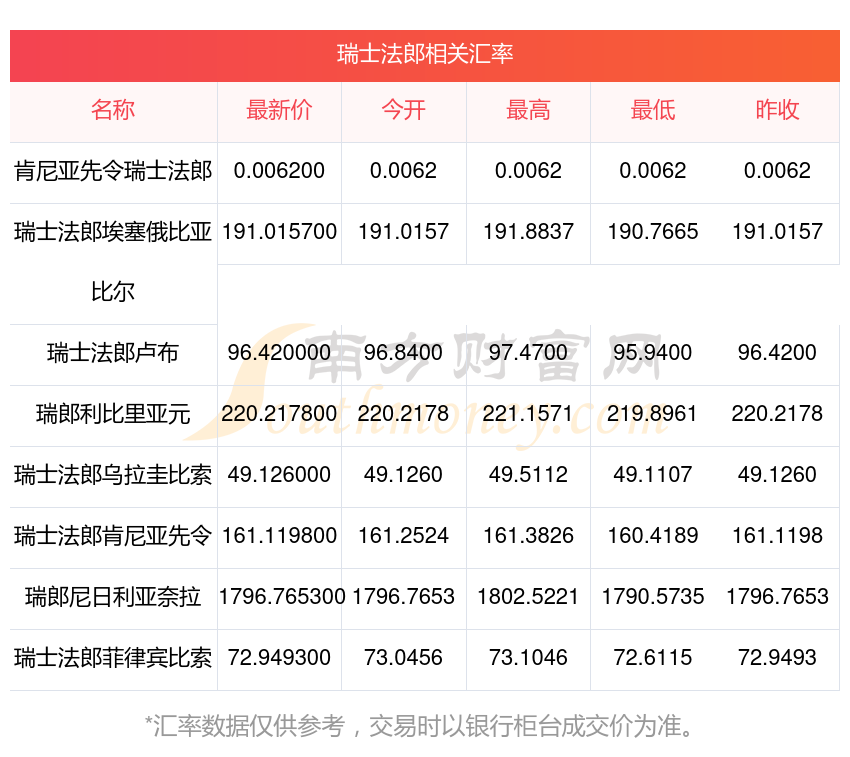2025年11月30日瑞士法郎相關(guān)匯率查詢