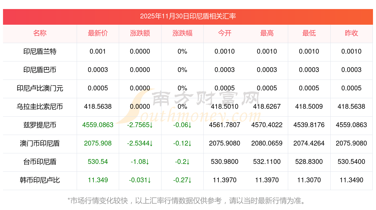 2025年11月30日印尼盾相關(guān)匯率查詢