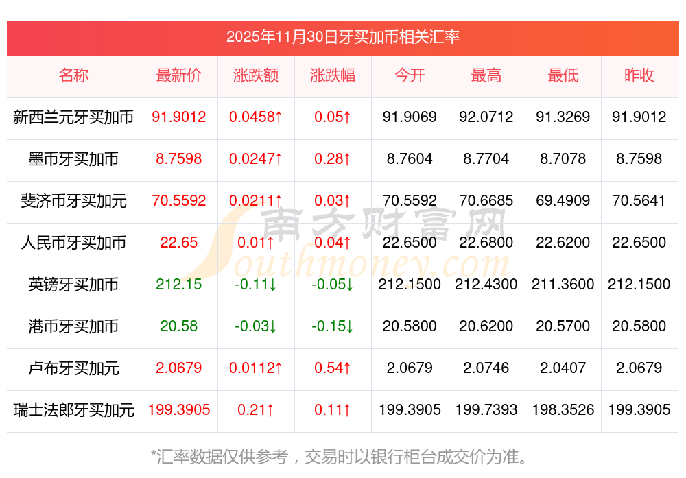2025年11月30日牙買加幣相關(guān)匯率查詢